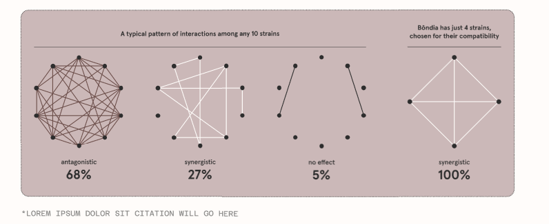 Bōndia’s formulation is intentionally streamlined. Its four strains were selected because the empirical data showed something novel: they work better together than they do on their own.